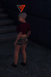 There are five triangles with an exclamation mark in them and with depending colors, a black triangle with white sidebar indicates the player has committed a crime but is not being chased by the authorities, on the other hand, if the triangle is red with black sidebar, this indicates the player is currently being chased by the authorities.