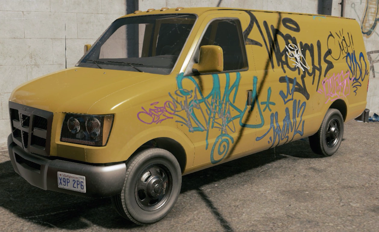 Relegater | Delivery van | 90s Chevy/GMC Step van | Available as an ice cream truck in Watch Dogs and Watch Dogs 2 and replaces the taco van variant of the Landrock Van 1500 in the second game. |