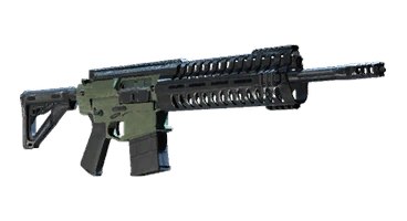 The P308 is a semi-automatic rifle based on the POF P308, albeit with less detail. It features a 406.4mm (16 inch) barrel and fires 7.62mm rounds. The majority of the weapon has a black coating but has a dark-green coloured receiver. It features a well-ventilated handguard, to prevent overheating, and a small magazine size and short stock. The muzzle of the weapon has gas vents, and it utilises its iron sights.