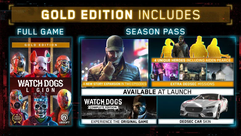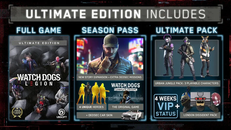 - ↑ https://www.ubisoft.com/en-us/game/watch-dogs/legion/news-updates/30fdWwcvWlw3fBc3hKJXjy/everything-you-need-to-know-about-watch-dogs-legions-launch